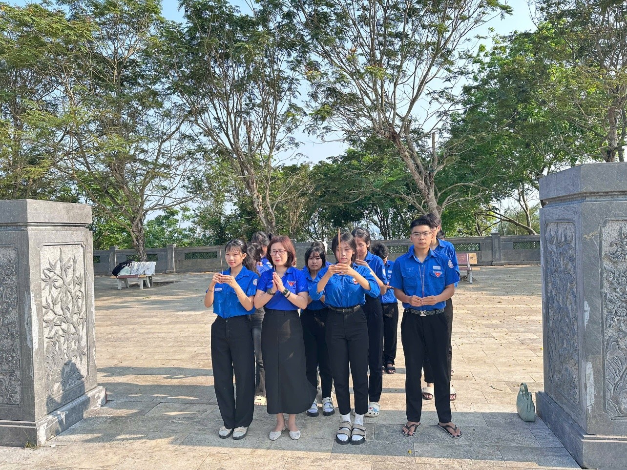 Trong không khí trang nghiêm và thành kính, Bí thư Đoàn trường Cô Nguyễn Thị Việt Kiều cùng bí thư của các chi đoàn đã kính cẩn dâng hương, dâng hoa để bày tỏ lòng biết ơn sâu sắc đối với công lao và những đóng góp to lớn của cụ Huỳnh Thúc Kháng đối với quê hương, đất nước.